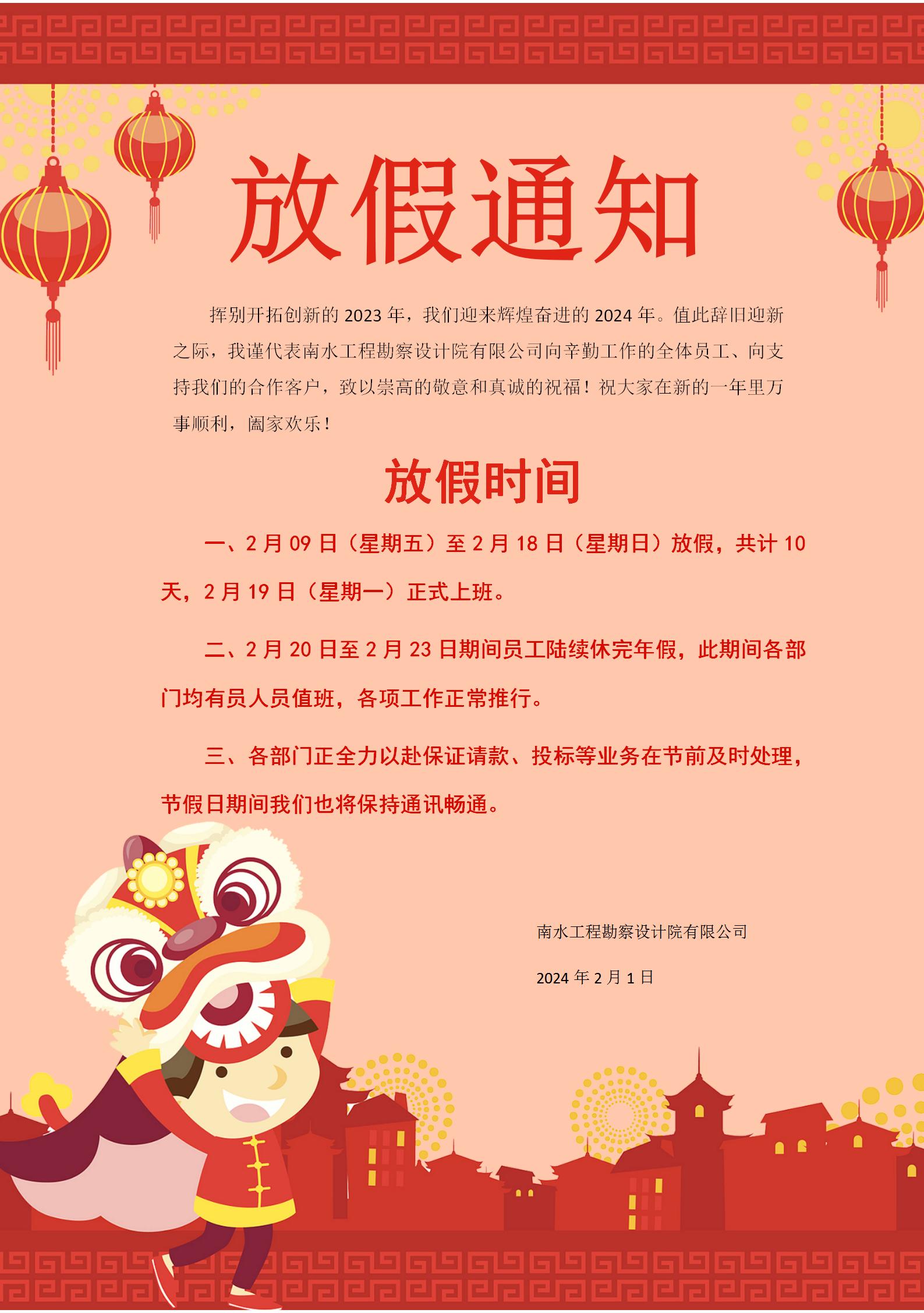 2024春节放假通知